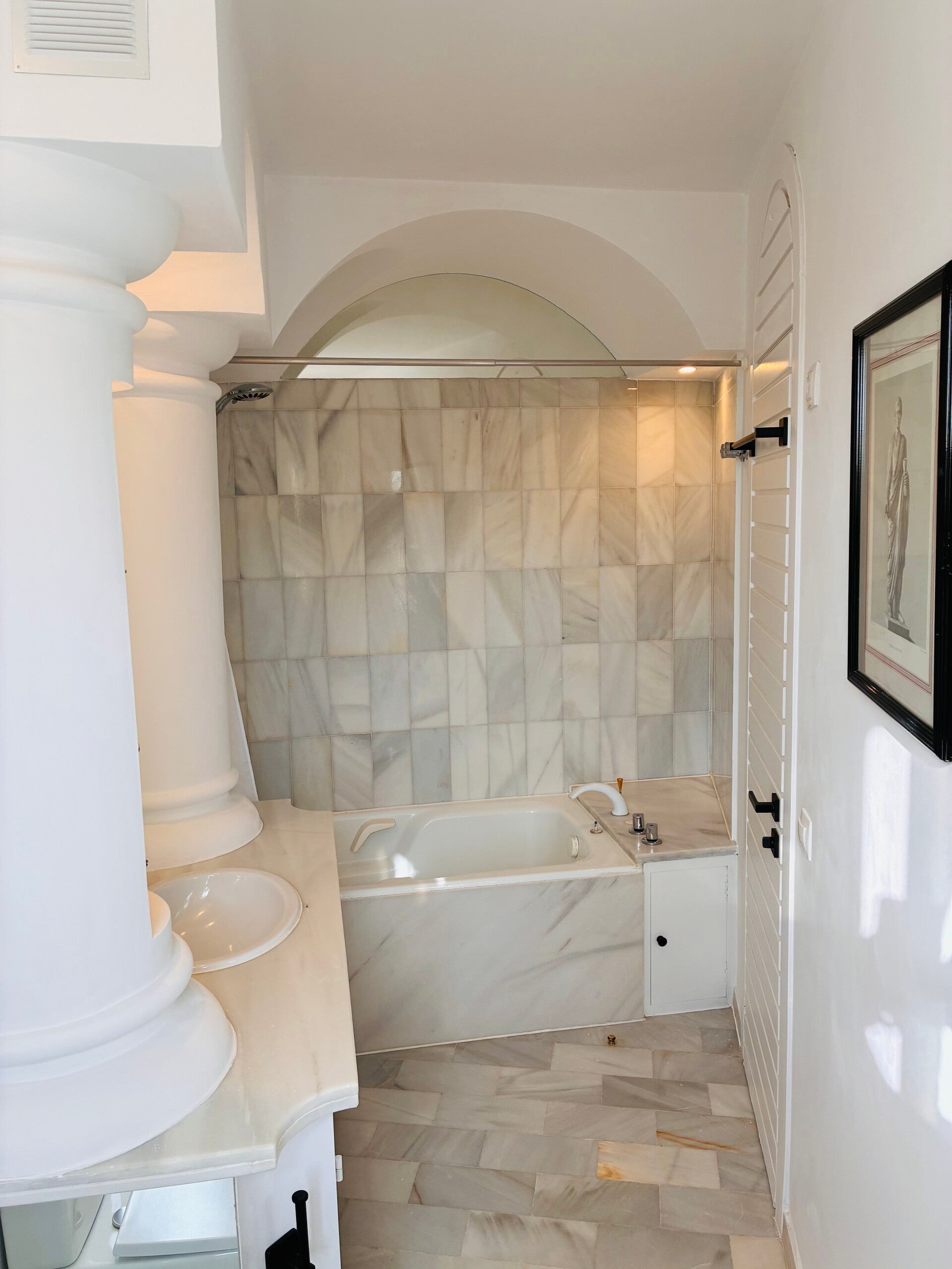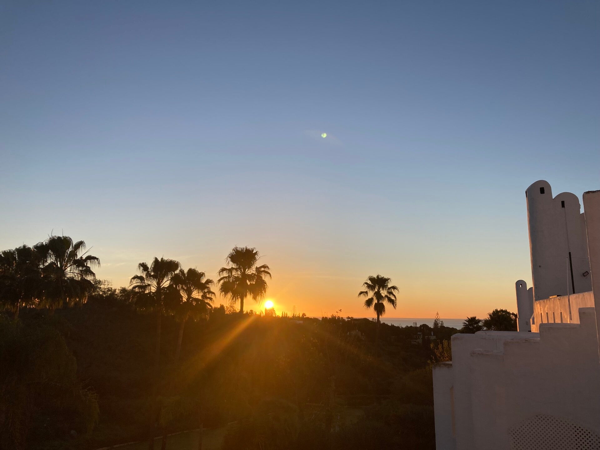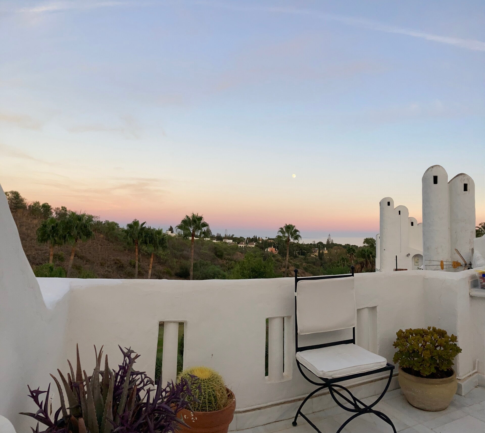 De masterbedroom gaat over in een eigen badkamer met bad, lavabo en toilet. Aansluitend is er ook een oostelijk terras met zeezicht. Opstaan met de opkomende zon boven de heuvel en de zee...